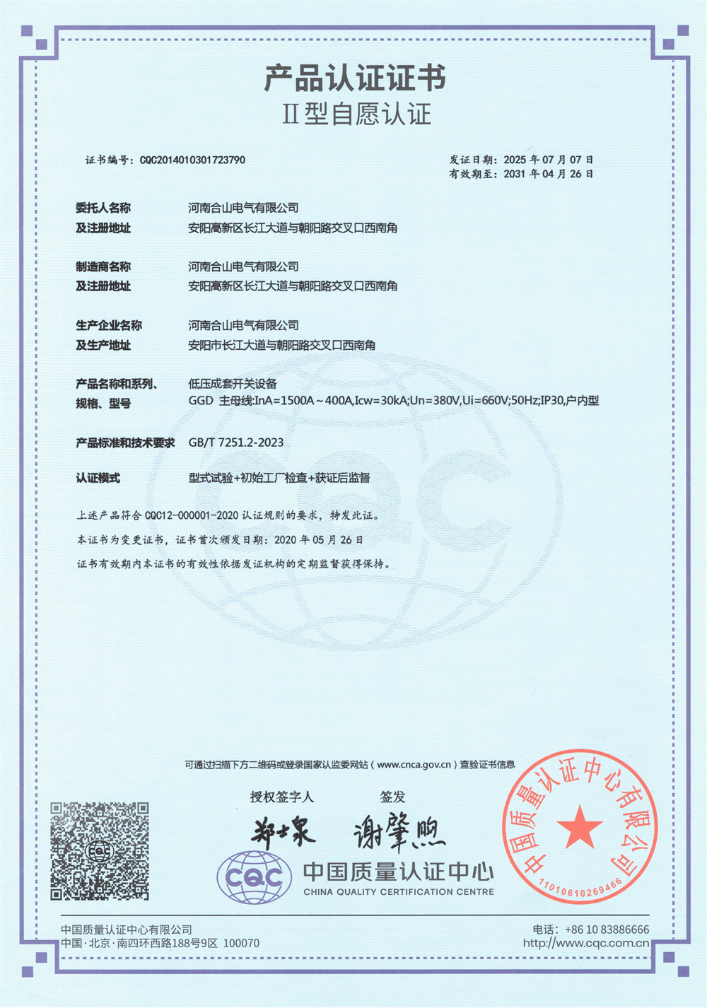 GGD铜证书