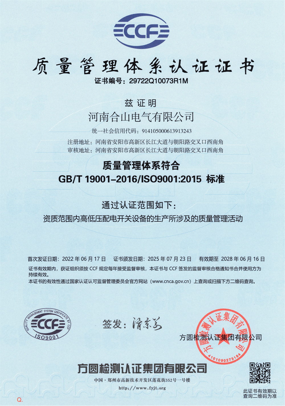 质量管理体系认证证书
